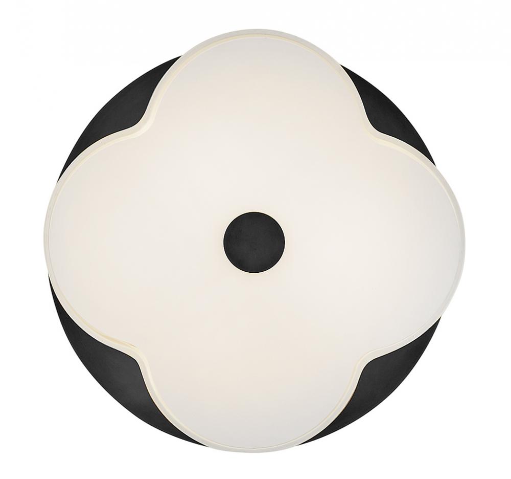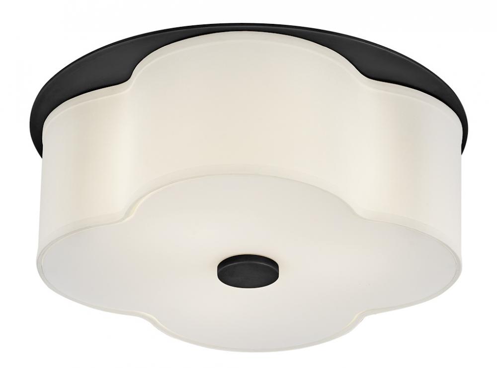 The curved quatrefoil silhouette of Delaney’s off-white linen shade elegantly complements traditional aesthetics. Etched glass softly diffuses light, while an oversized decorative canopy in Heritage Brass or Black provides a subtle contrast.