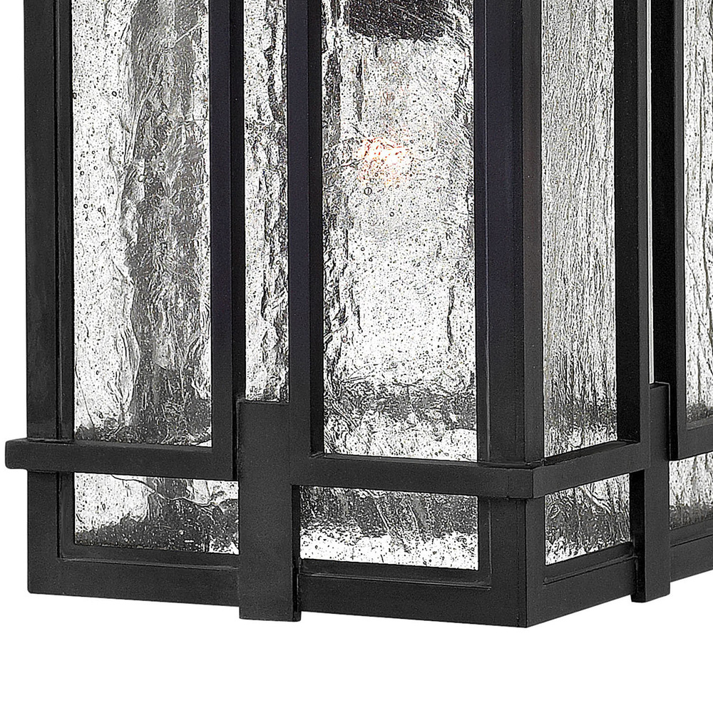 Tucker is study in symmetry with clean geometric lines and proportions reinforced throughout its cast aluminum construction. The sturdy Museum Black or Oil Rubbed Bronze finish and clear seedy glass inspire a rustic lodge aesthetic.