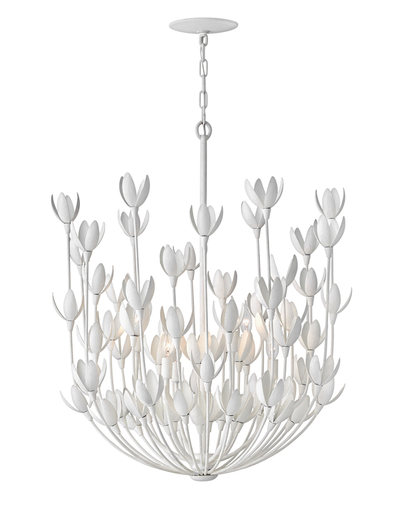 Flora is a work of art inspired by the delicate nature and beauty of florals. Blurring the line between lighting and sculpture, Flora’s handmade, hand-painted blooms mesmerizingly unfold while the bulbs beautifully nestle inside.