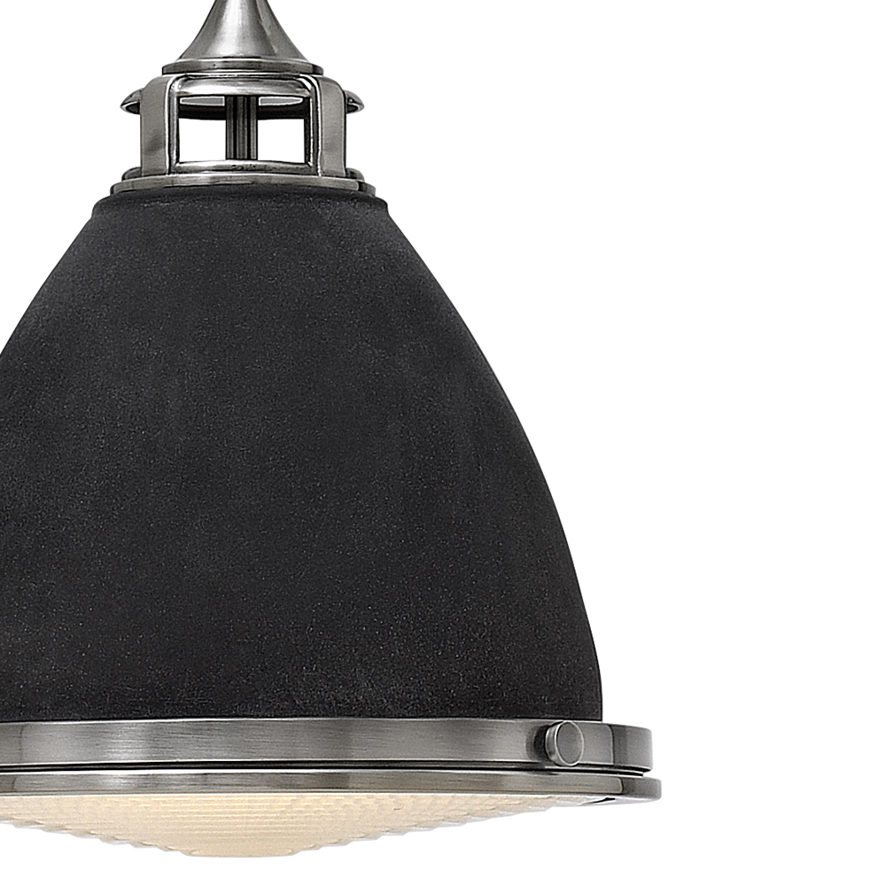 Amelia's classic pendant design reinvents vintage details with a cast metal fitter, decorative metal trim ring and ornamental knobs. Bold finish options glow with retro inspiration.