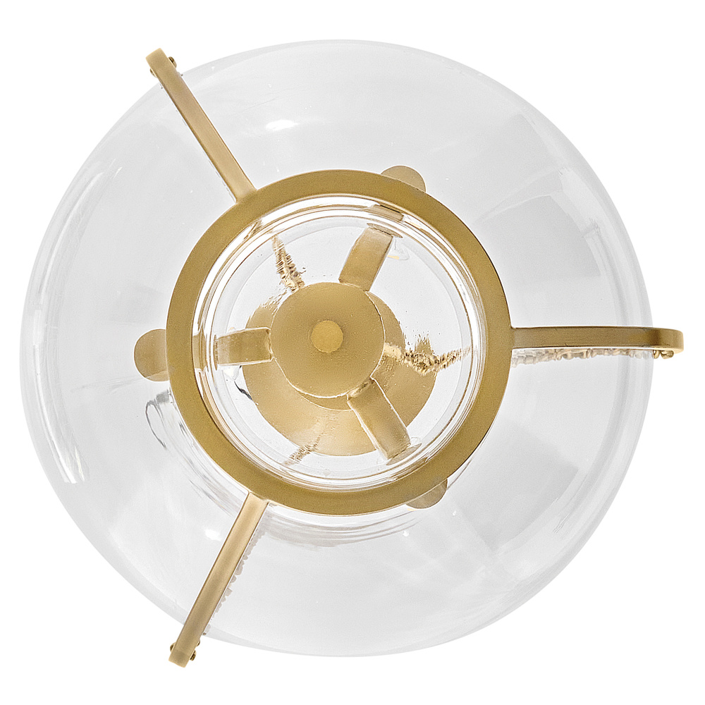 Distinguished by its substantial teardrop silhouette and large, Clear glass shade suspended from decorative chains, Farrin’s traditional styling brings sophistication to your living or dining space. A central cluster of brilliant candelabra lamps is accented by a three-armed frame and matching candle sleeves in a Lacquered Brass or dark Gunmetal finish.
