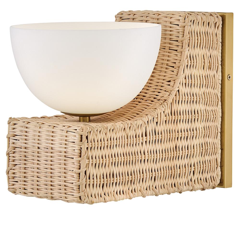 Named after a beach in Laguna, California, marked by a single, large palm leaf umbrella in the sand – Thalia’s distinctive, whimsical woven design evokes the relaxed, carefree spirit of coastal living. Natural raffia is complemented by a shallow opal glass bowl, and a playful tassel adds a fun bohemian touch that can be removed for a more streamlined look.