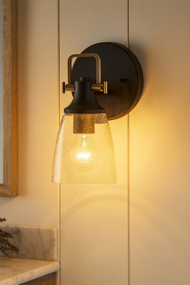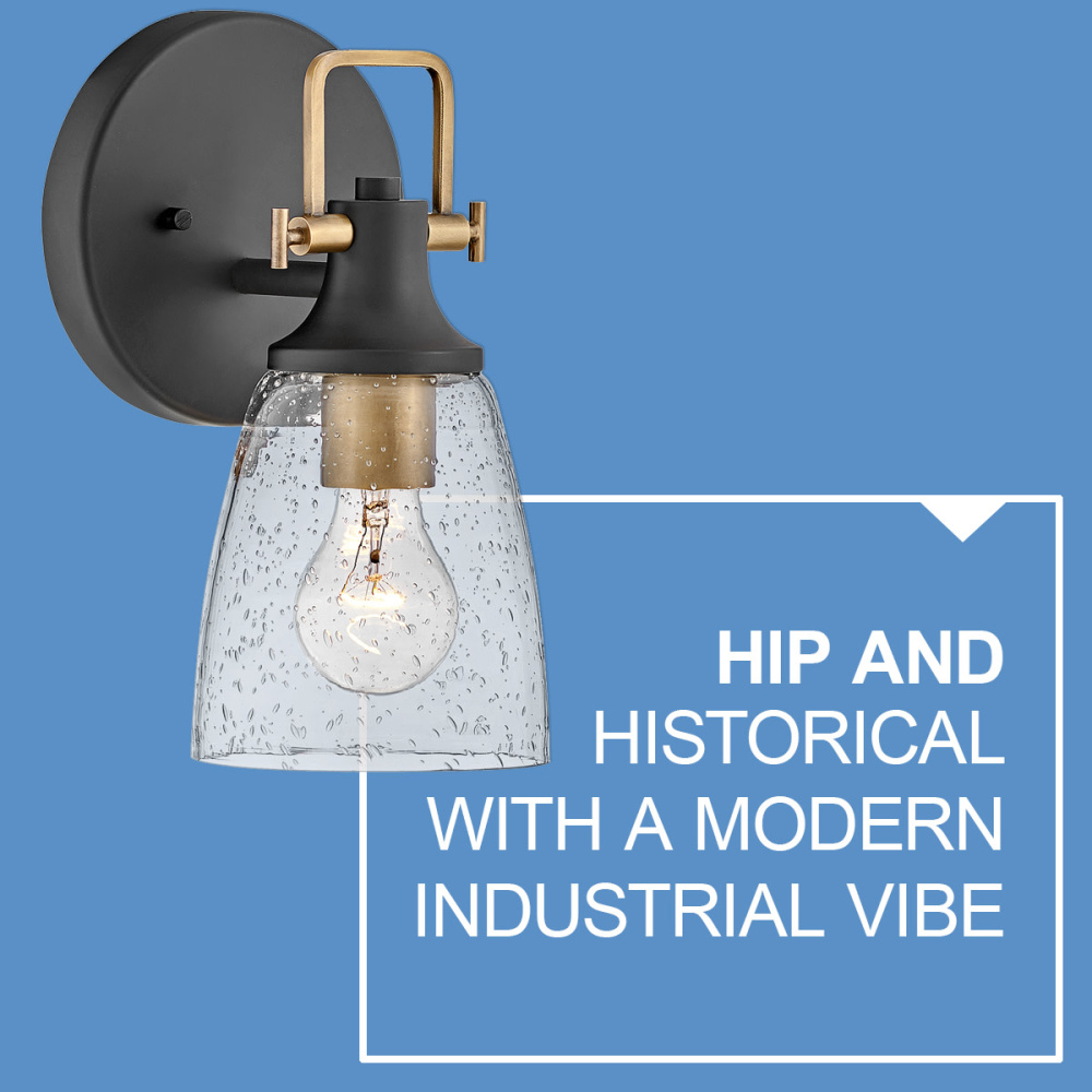 With style elements that blend both hip and historical, Easton exudes a modern industrial vibe. Bold clear seedy glass shades pair with a distinctive top yoke and vintage-inspired knobs for a robust silhouette.