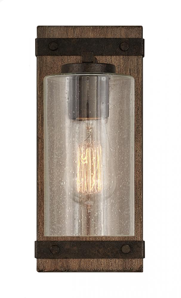 The fresh, rustic design of the Sawyer collection will enhance any living experience with a warm, cozy ambiance. The Aged Zinc finish with Distressed Black accents or Sequoia finish with Iron Rust accents paired with clear seedy glass offer a farmhouse chic style.