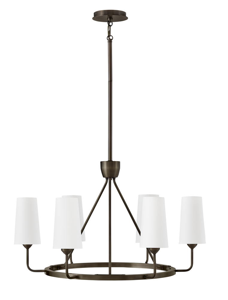 Lewis offers traditional charm paired with updated, transitional elements. Tall natural paper shades feature fine stitching detail against a Heritage Brass or Black Oxide finish to enhance timeless interiors.