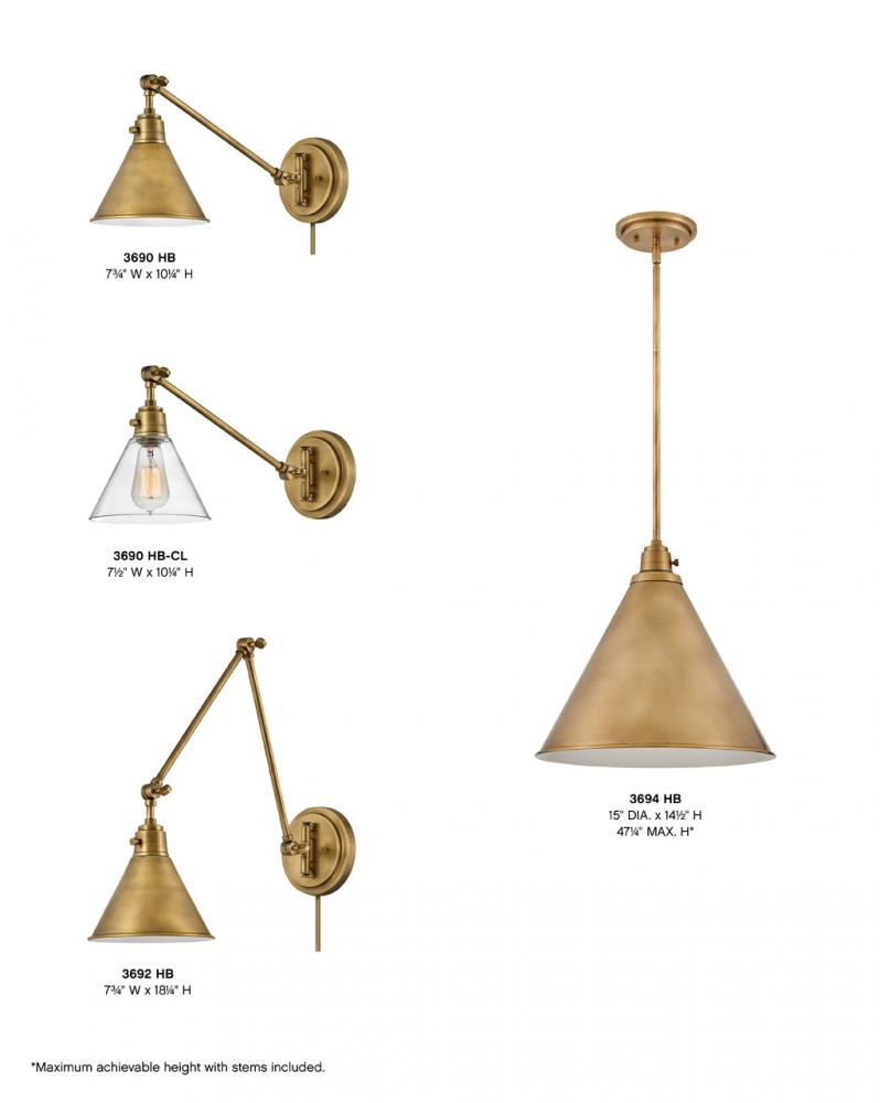 34 Extension, Dimensions as shown, Fully adjustable, On/Off switch, Optional Cord Cover HB