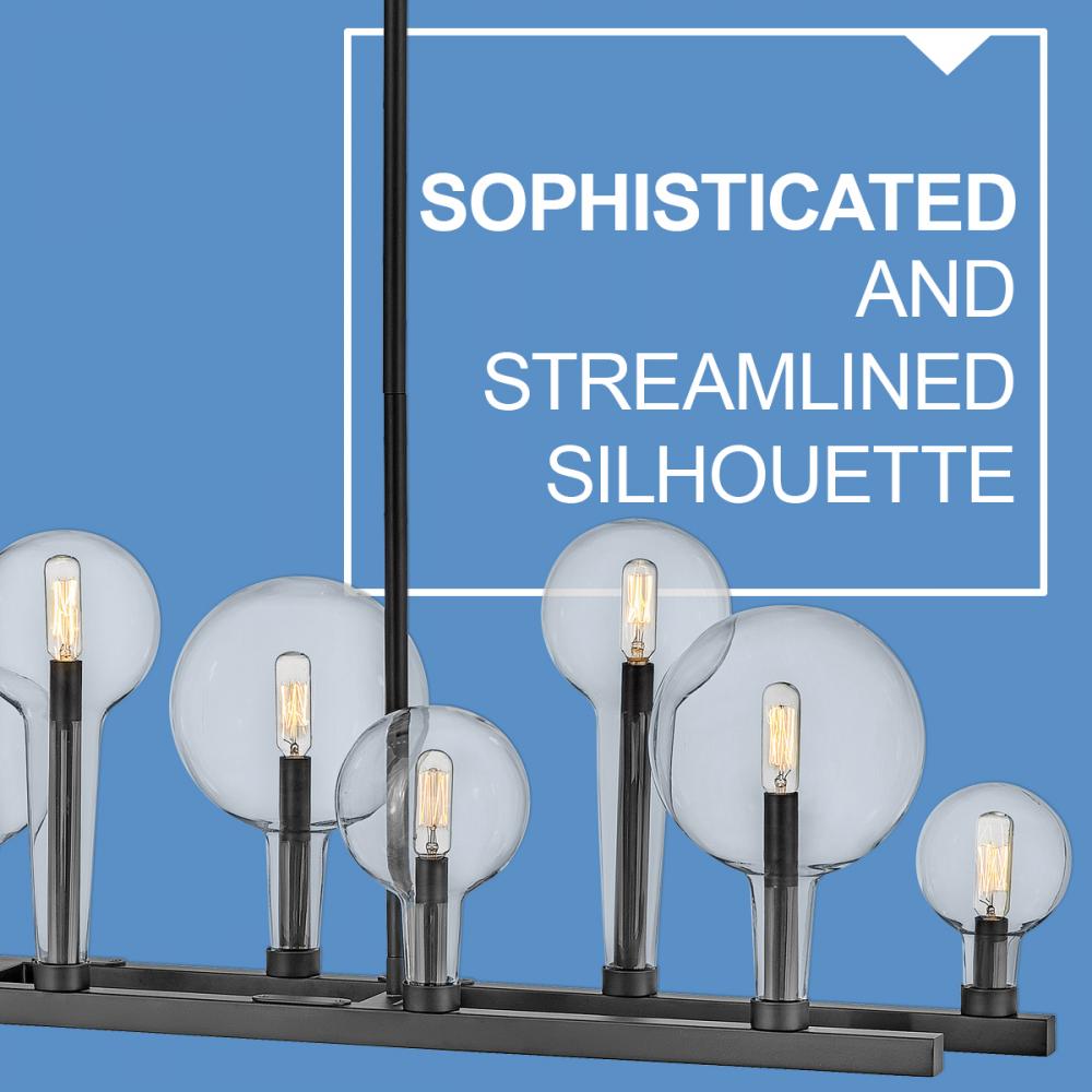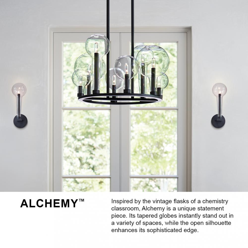 Inspired by the vintage flasks of a chemistry classroom, Alchemy is a unique statement piece. Its tapered globes instantly stand out in a variety of spaces, while the open silhouette enhances its sophisticated edge.