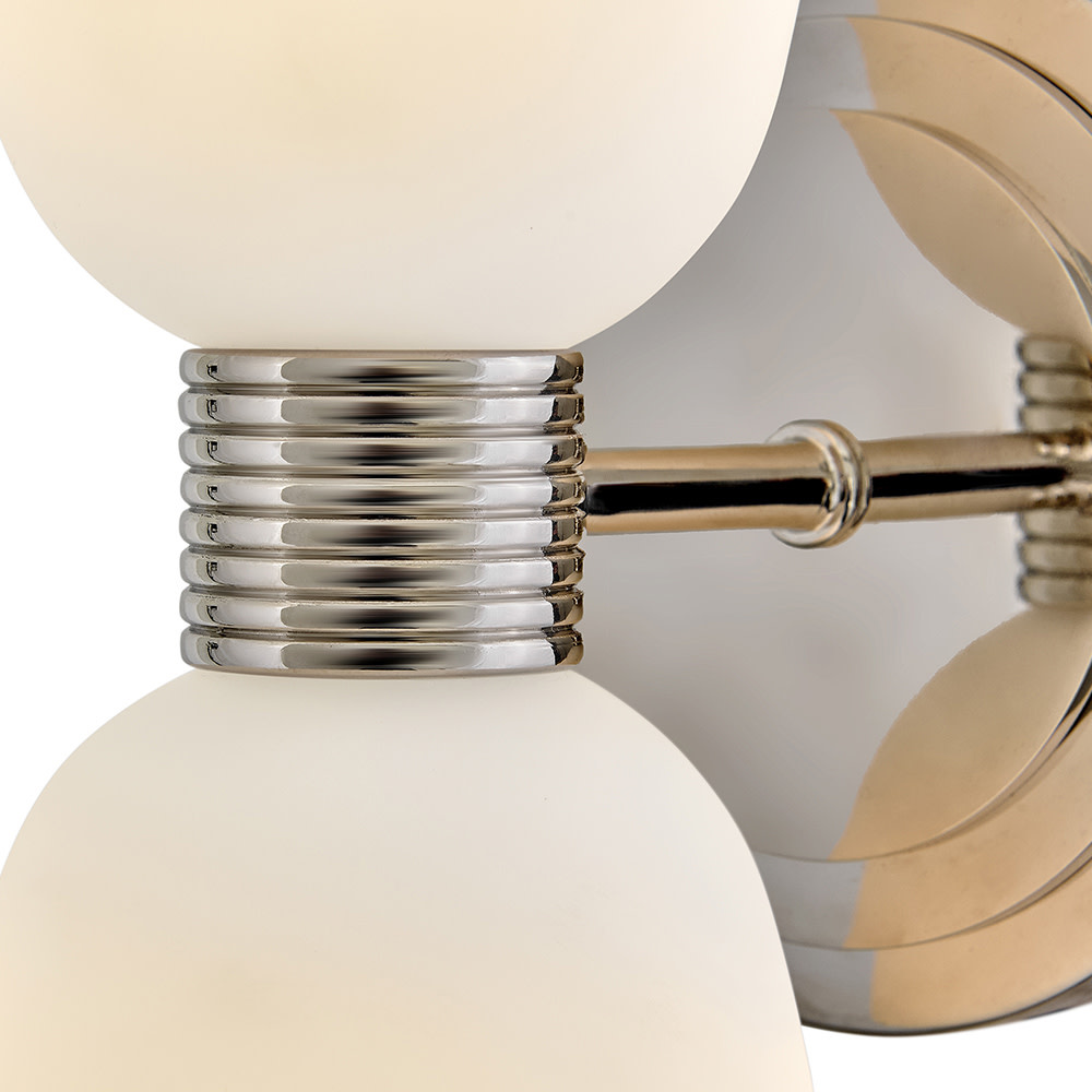 Graceful curves and delicate details define Tallulah. The smooth etched opal glass adds a touch of softness to balance ribbed metal details. Hardware featuring our Lacquered Brass or Polished Nickel finish creates a nuanced retro look that makes Tallulah the perfect addition to any décor.
