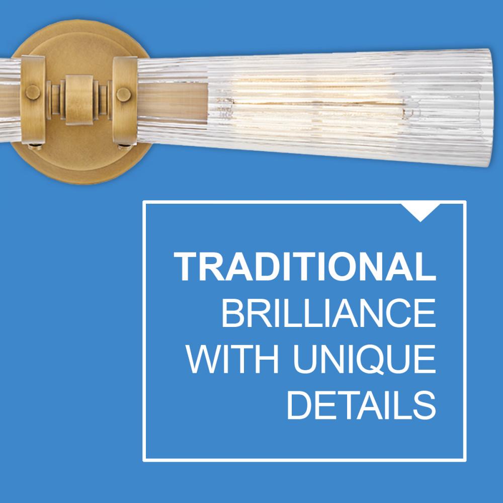 Add a dash of traditional brilliance into your every day with Jude. Featuring fluted glass held in place with decorative knobs, this family showcases timeless, traditional elegance with a unique finish. The light extends from either side, anchored in the middle for a silhouette that’s as striking as it is functional.