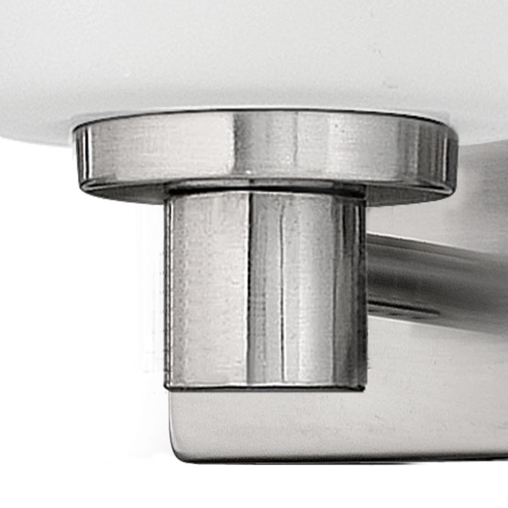 Karlie's clean design is transitional in style and will complement a variety of décor. Featuring precision die-cast cups and cylindrical, etched opal glass, it is available in Brushed Nickel and Chrome.