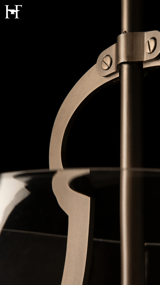 This large Caliper Pendant gives scale to our popular design. At over 16" in diameter, this Caliper is large enough to hang as a single fixture in a breakfast nook, or a double over most kitchen counters. With the metal feature designed to resemble an antique tool, the Caliper's large glass shade is supported by this "tool" and lower metal rim.