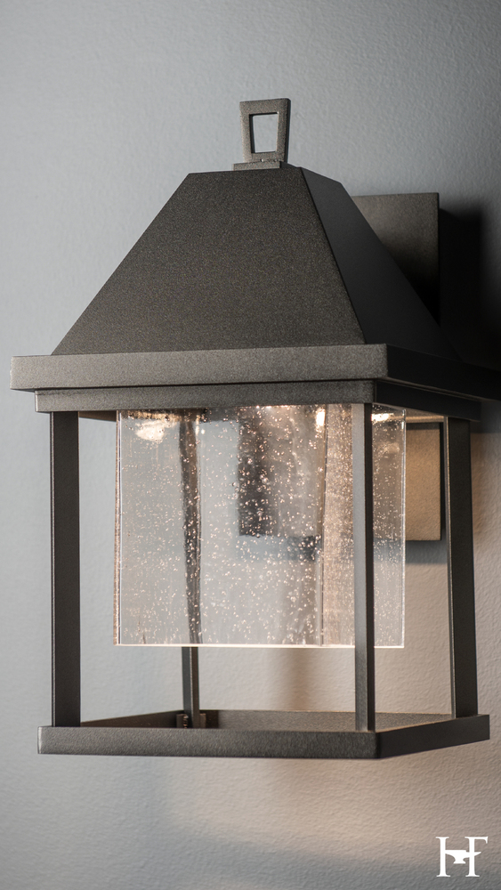 Classic lantern details define the Dorset Outdoor Collection" according to designer Paul Marr Hilliard. With its square face and pyramidal "roof", this smaller Dark Sky Friendly wall mounted sconce blends traditional and contemporary styles, and offers a wonderful option to light the exterior. Available in a choice of AAMA 2604-rated Coastal Outdoor Finishes.