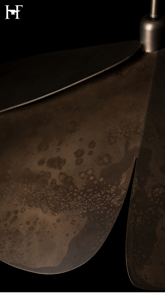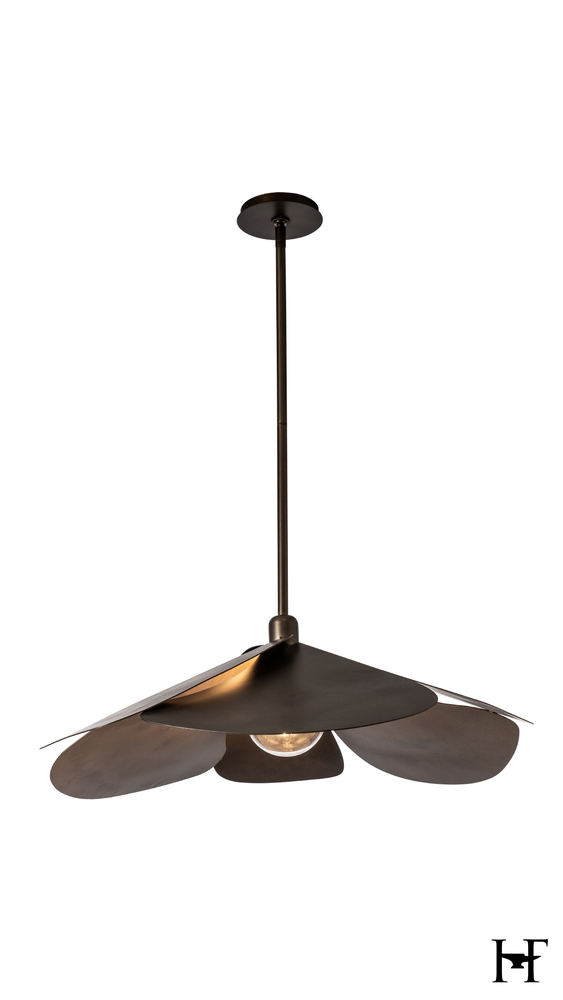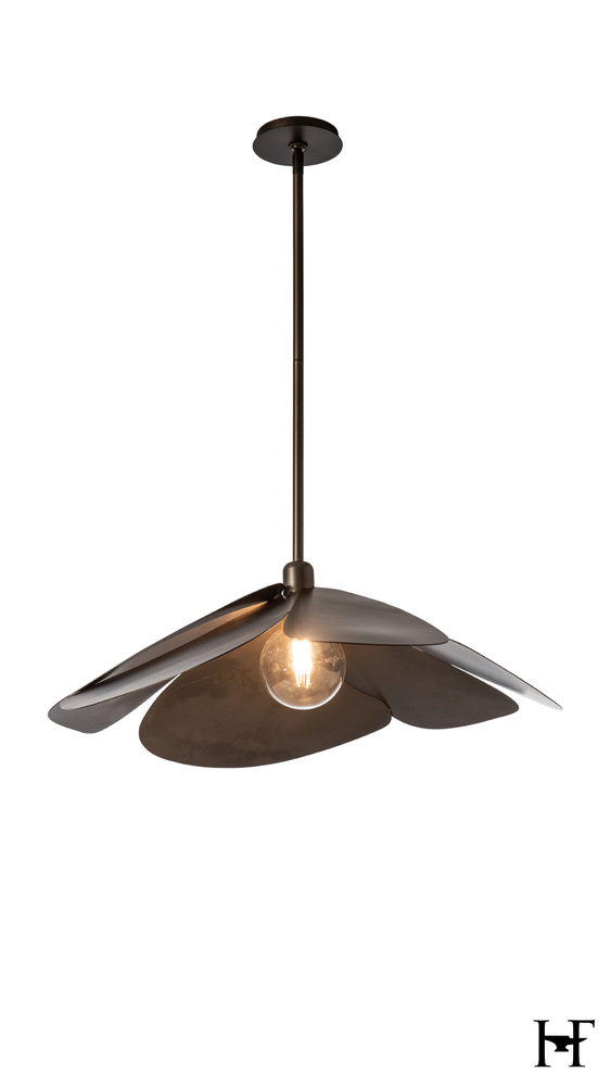 Possibly best known for its Japanese meaning "flower", Hana also means "craft" in Hawaiian and beautifully "to shine, glow, give out love or radiance" in Maori. Designed by David Kitts, this lovely, handcrafted Hana Large Pendant embodies all of that, and more. Its six, large hand-forged petals demonstrate the work of our Vermont artisans with the textured steel from the heat of the fires. Offered in any of our 11 standard finishes, or get a pop of custom color (ask us about matching any of 200+ RAL colors!).