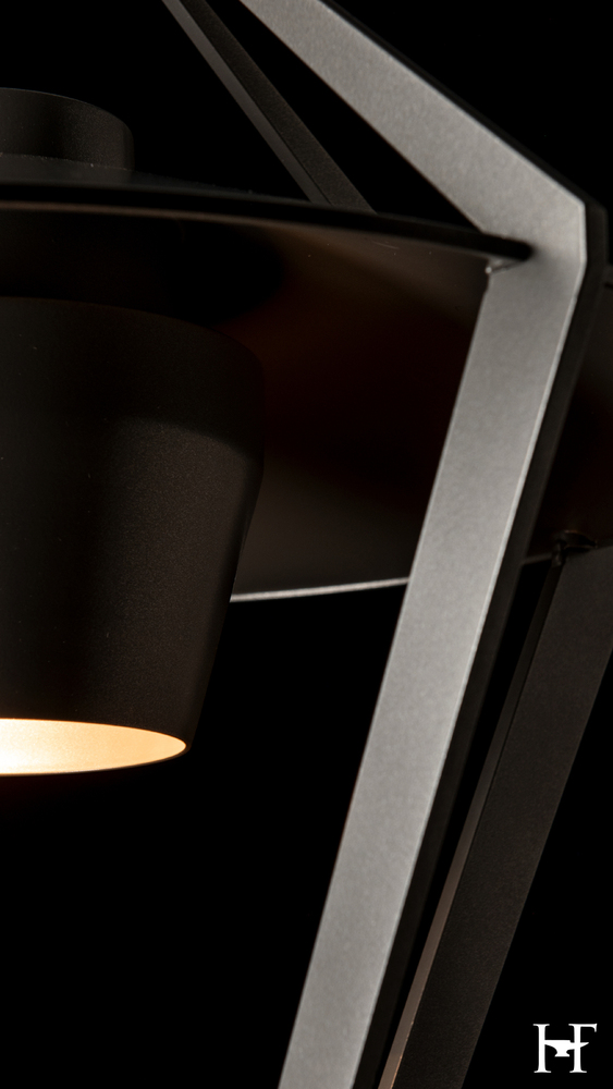 Enclosed in a stunning metal exoskeleton for a minimalist contemporary take on a classic lantern design, this Dark Sky Friendly post light offers a sophisticated welcome to visitors. Its airy, open "cage" contains a short metal cylinder from which the light emanates. By focusing the light downward, light pollution is reduced and the effective lighting helps to increase path safety.