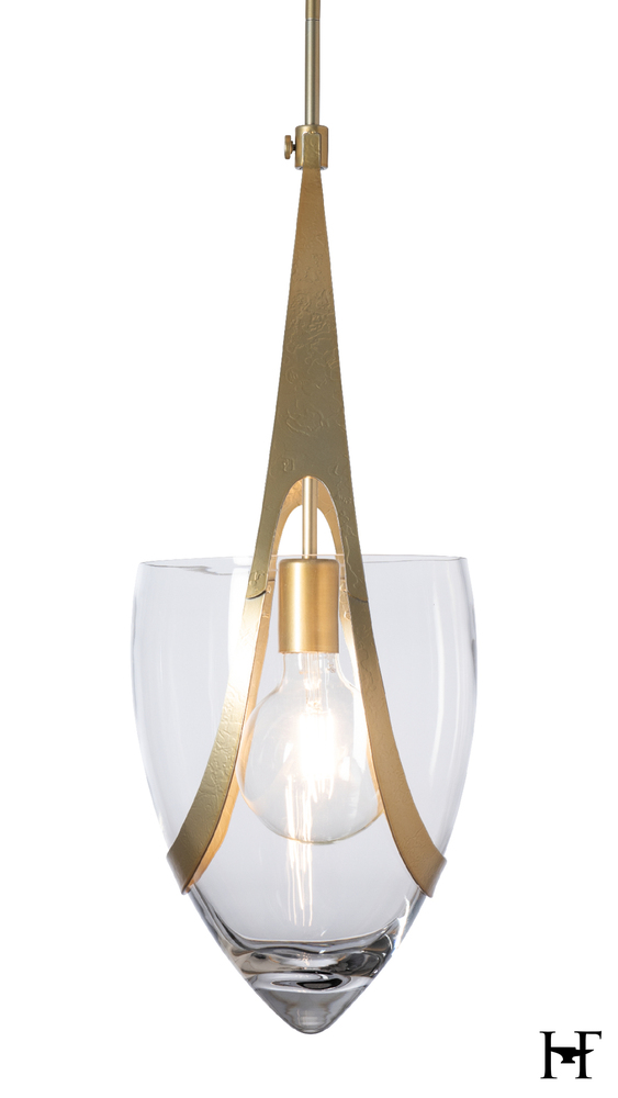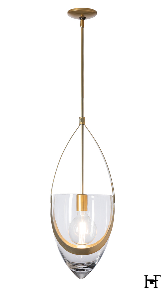 Designed by Jason Hancock, the Vaso's conically-shaped glass has a very substantial and shaped base that is nestled within a beautiful handcrafted, forged steel "strap". May be hung singly or in multiples.