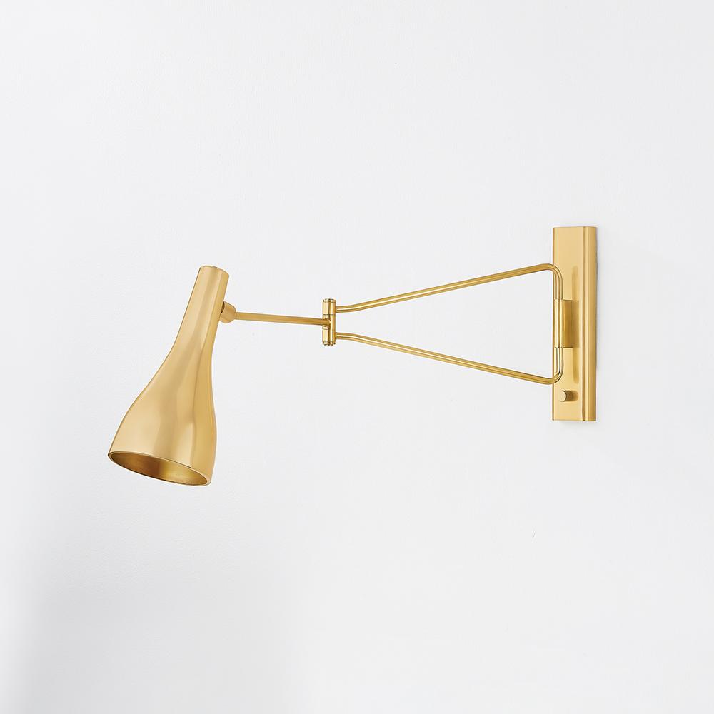 Inspired by mid-century design aesthetics, Northford features a playful triangular arm and bell-shaped shade. The narrow backplate includes a dimmer switch that allows for precise adjustments in brightness. This fixture is perfect as a reading light above a sofa or lounge chair, or anywhere adjustable task lighting is required.