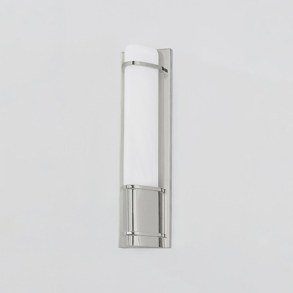 Pairing minimalist metalwork with matte cloud glass, Tottenville is a highly versatile sconce for a powder room or bath area. The glass shades feature a unique triangular profile that gives this fixture both slimness and its distinctly modern feel. Choose from a single or dual light sconce with an Aged Brass or Polished Nickel finish.