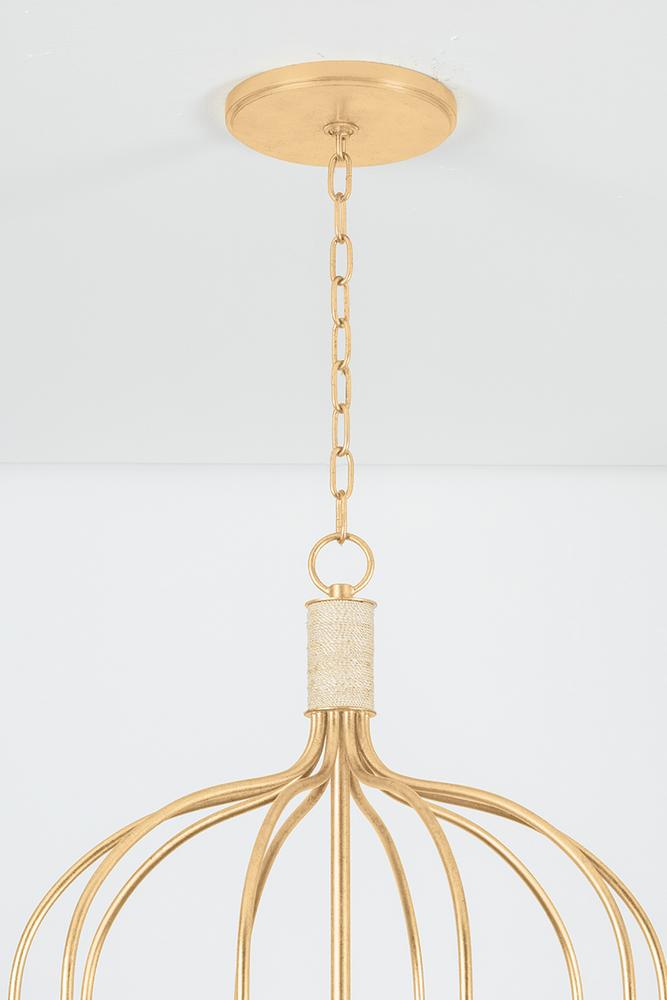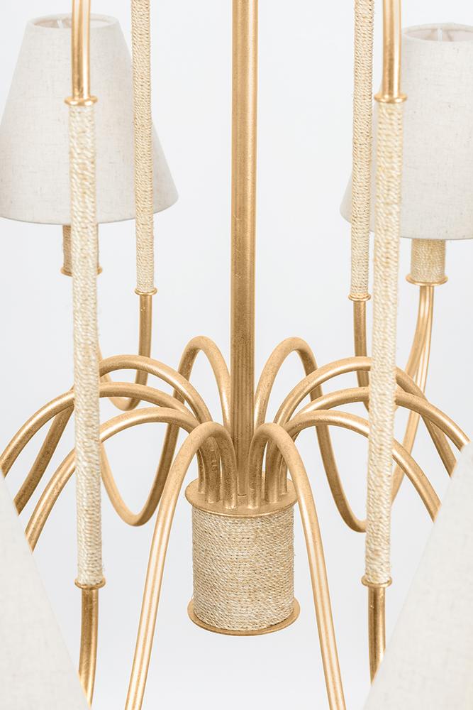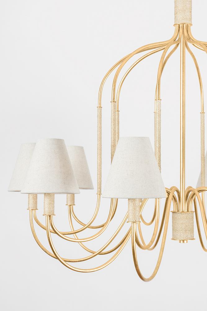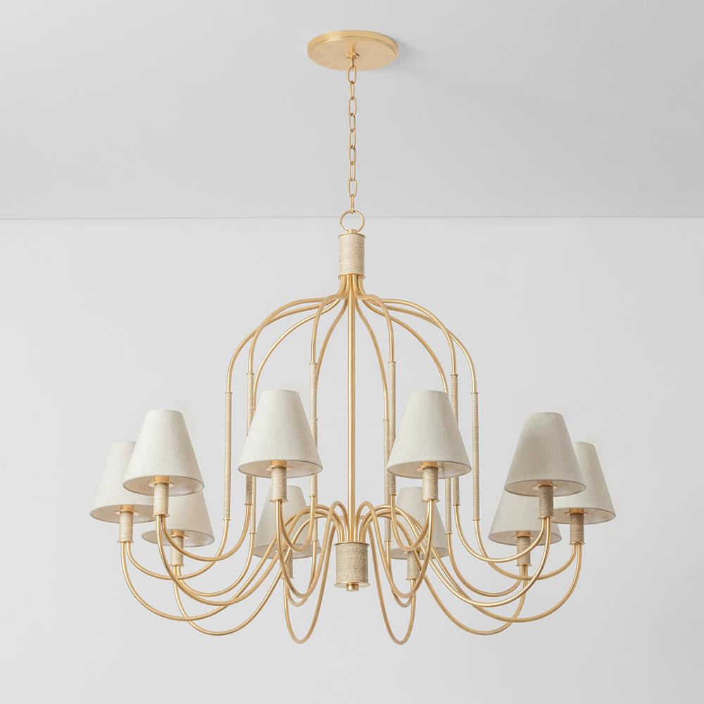 The Parisian-inspired designs of the Warrensburg family channel vintage motifs for a fresh take on romantic lighting. The intricate swooping metalwork recalls the shape of an antique carriage, enhanced by the glamorous Vintage Gold Leaf finish. Subtle Abaca-wrapped details and linen shades add natural, artisanal elements. Whether as a 1-light sconce or 6 or 10-light chandelier, Warrensburg brings a dose of fantasy to modern and traditional spaces. Due to the one-of-a-kind nature of the medium, exact colors and patterns may vary slightly from the image shown.