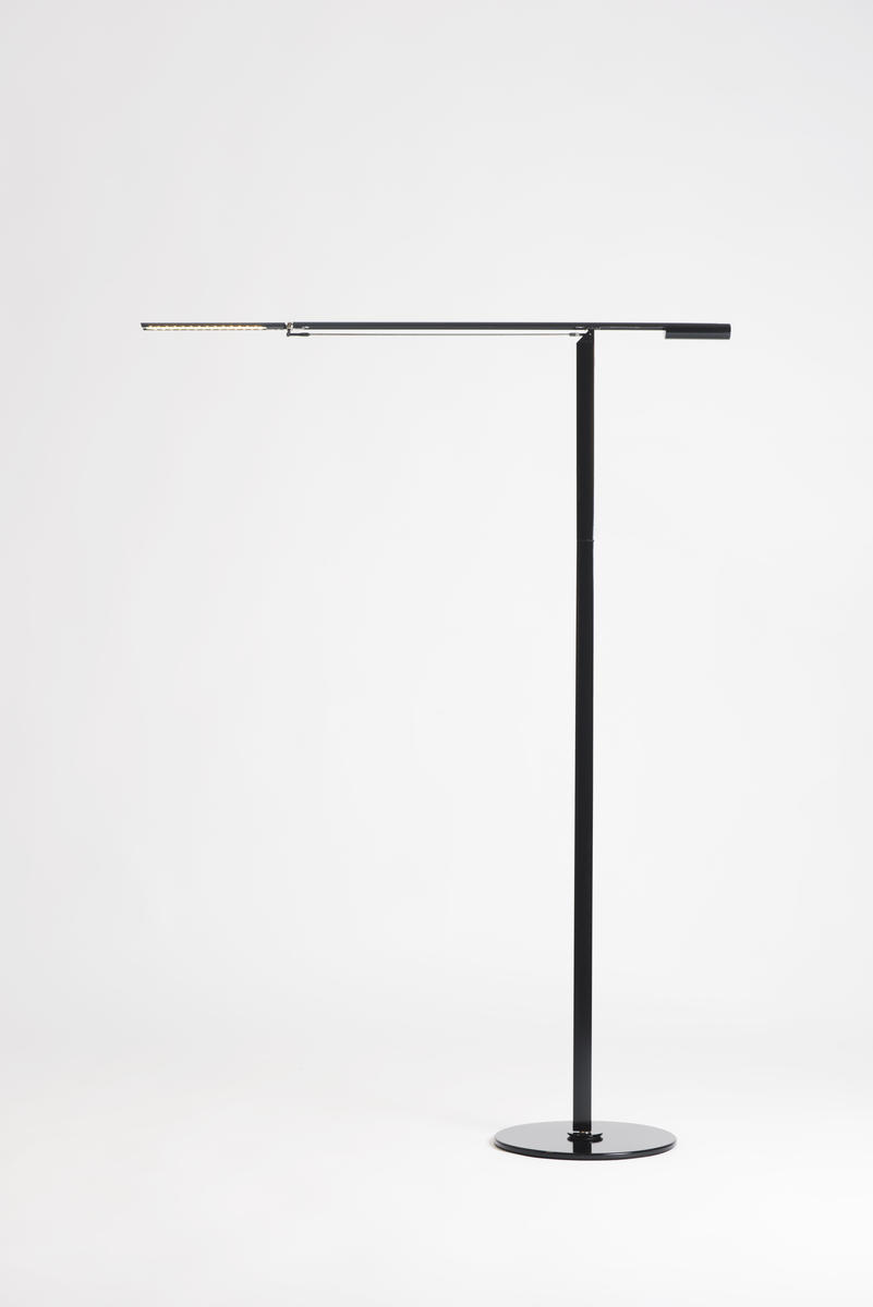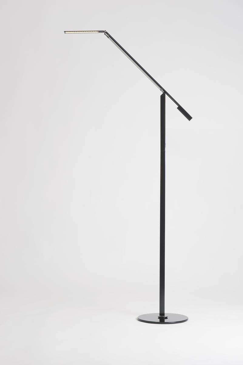 Equo Floor Lamp brings the counterweight of the Equo without the need for a table. Equo Floor Lamp is easily adjusted with just the touch of a finger. Slide your finger along the stem's touchstrip to control brightness and power. The special neck joint maintains the head's tilt as the arm swings up or down. The luminaire head is rotatable up to 180 degrees. Compatible with optional occupancy sensor.