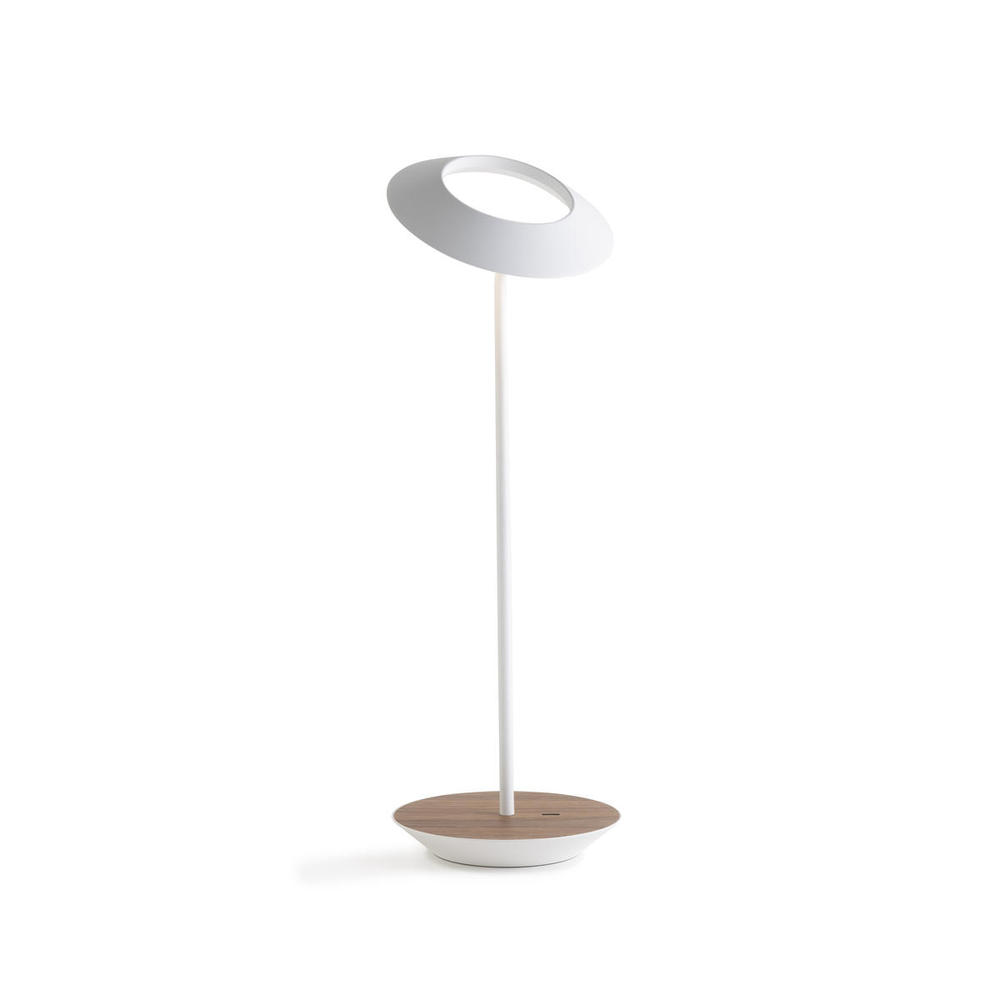 Royyo Desk Lamp, Matte White body, Oiled Walnut base plate