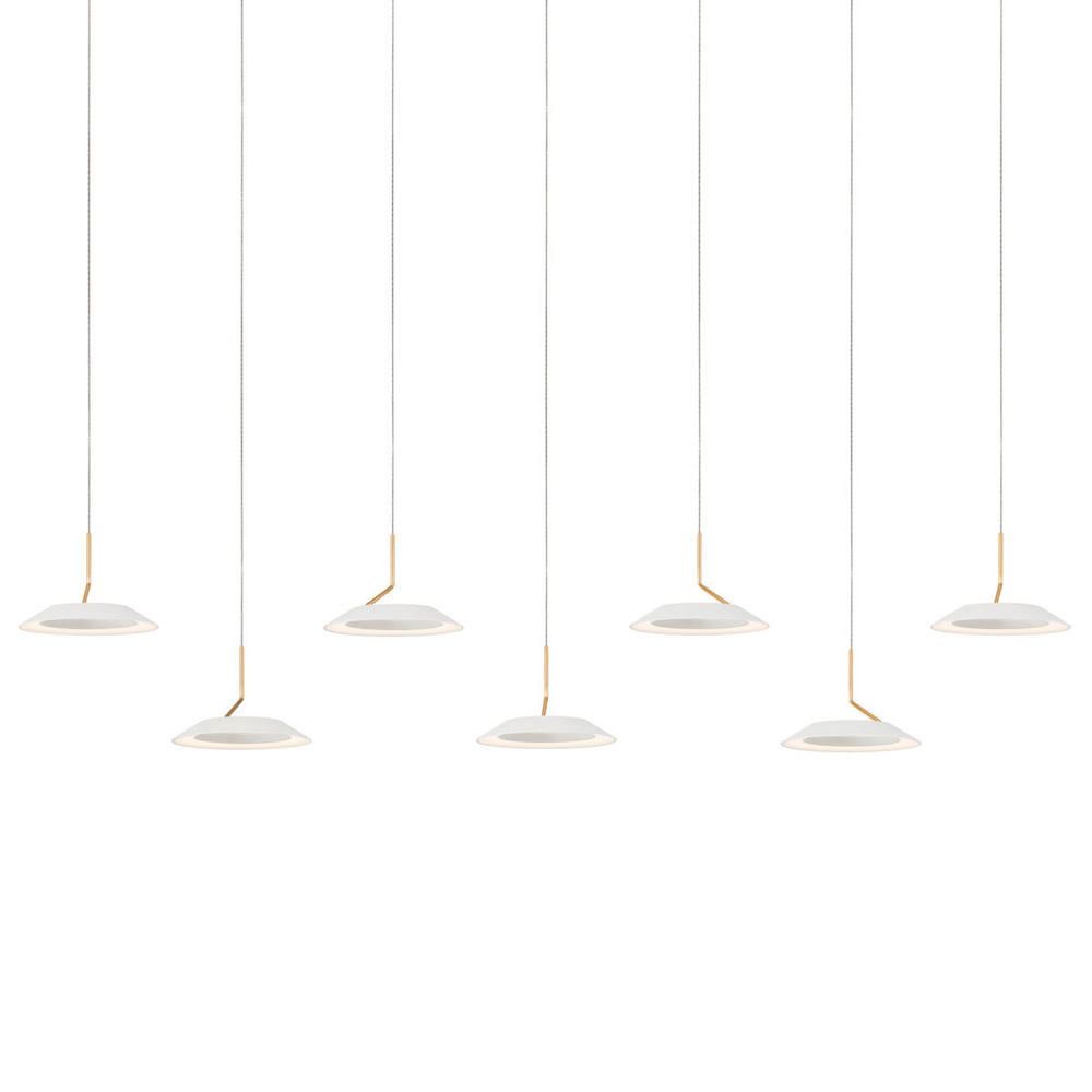 Royyo Pendant (linear with 7 pendants), Matte White with Gold accent, Matte White Canopy
