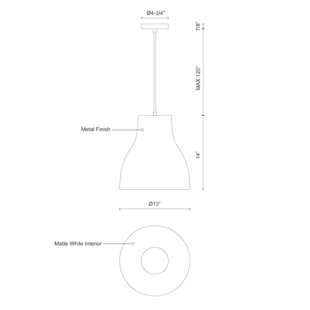 Single-lamp pendant with tapered aluminum shade showcasing powder-coated finishes. Exterior shade colors are either black, gray or white, with matte white interior. Suspended by cloth cable . Available in three sizes.