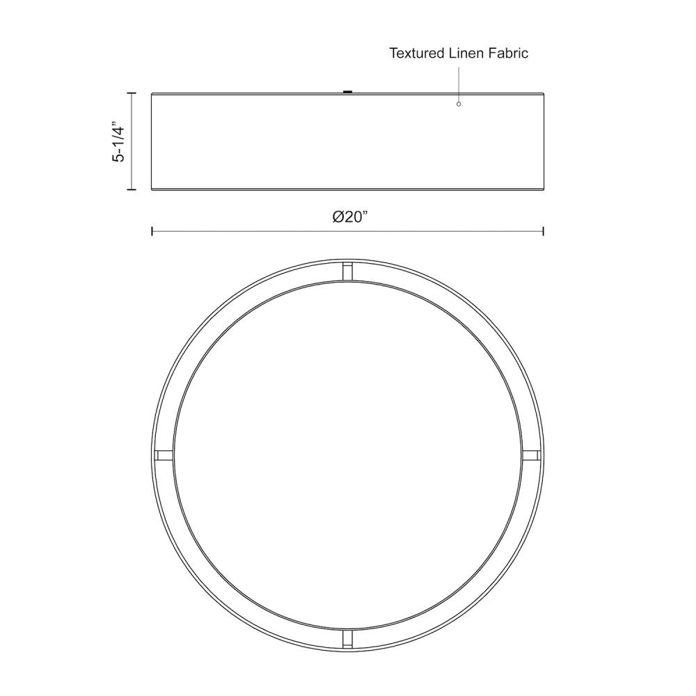 An organza or textured linen band surrounds a concentric polymeric diffuser spreading even light from the LED source. Finely hand-tailored, the fabric shade contributes a soft sophistication to the modern interior. Applicable as a flush mount, pendant and in numerous sizes and fabric colors to suit your context.