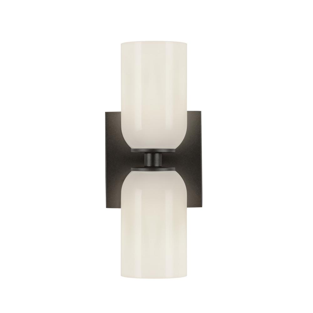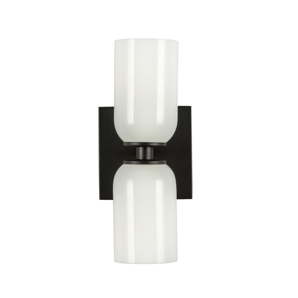 Nola 12-in Black/Glossy Opal Glass 2 Lights Wall Sconce