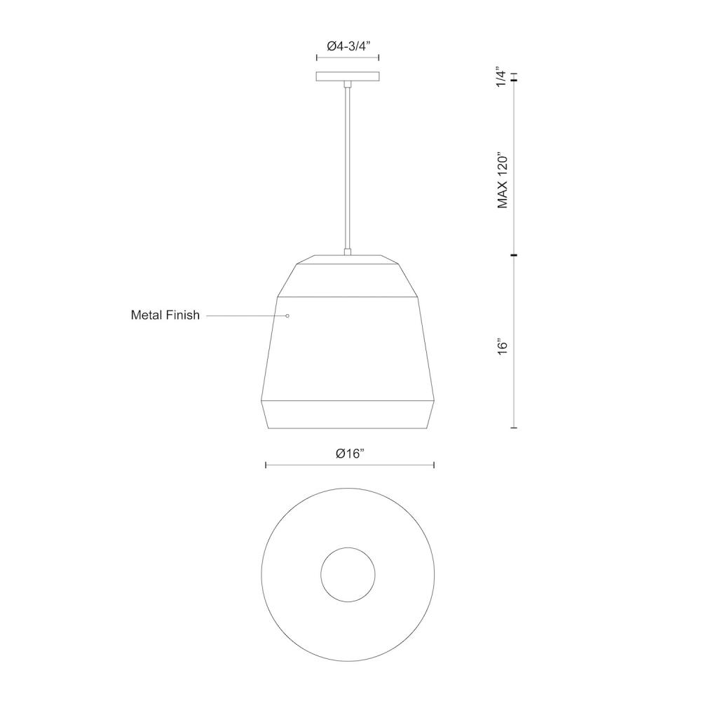 Single-lamp pendant with faceted aluminum shade showcasing powder-coated finishes against a matte white interior. Exterior shade color in black. Suspended by cloth cable. Available in two sizes.