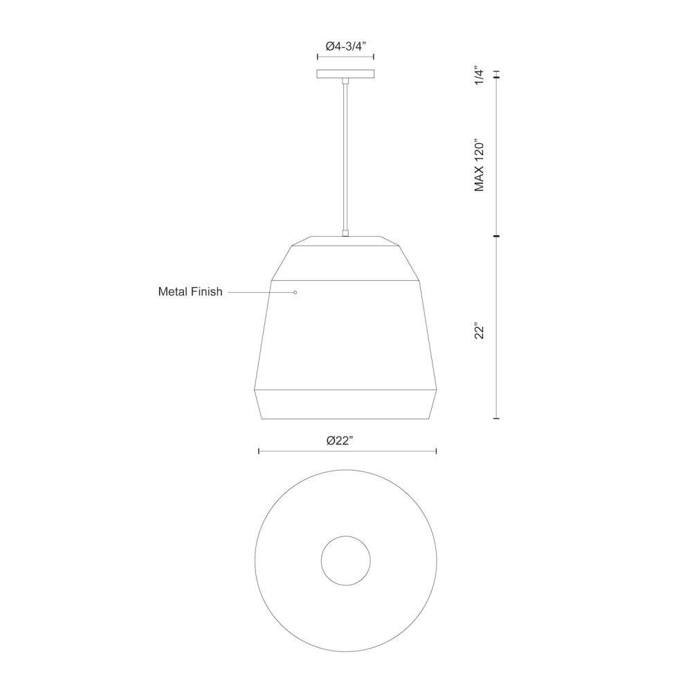 Single-lamp pendant with faceted aluminum shade showcasing powder-coated finishes against a matte white interior. Exterior shade color in black. Suspended by cloth cable. Available in two sizes.