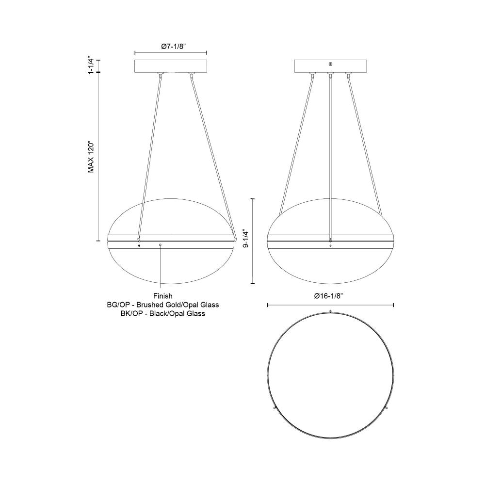 Virgo 16-in Black/Opal Glass LED Pendant