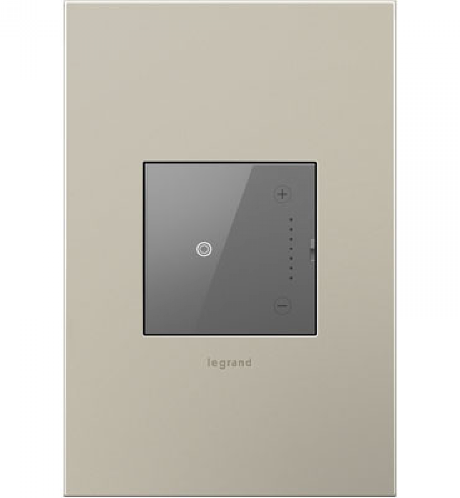 Perfect anywhere you'd like to turn lights on and off with the simplest touch, while also enjoying the ability to dim. Featuring a translucent glass-like face, this modern dimmer lets you control your lights by simply pressing a finger to the center circle to turn lights on/off, or use the + or - on the side to dim. Use the dimmer switch on its own to control a 0-10V light or fixture from a single location, or pair with a 3-way switch to control a single light source from two locations. Pair with the matching Touch Switch for a consistent control-style throughout a room, or your entire house.This dimmer* features enduring Microban? antimicrobial technology that works to reduce the growth of bacteria, around the clock, for the lifespan of the product.* Existing inventory of switches, dimmers and plastic wall plates from the adorne? Collection at some partner locations may not yet include Microban? protection. To confirm that a specific Legrand product is protected with Microban?, check that the exterior of the product packaging includes a green dot or a ""Protected with Microban"" label.Made exclusively for use with screwless Wall Plates from the adorne? Collection, sold separately.No antimicrobial efficacy claims are being made or are valid with respect to products sold in Canada.