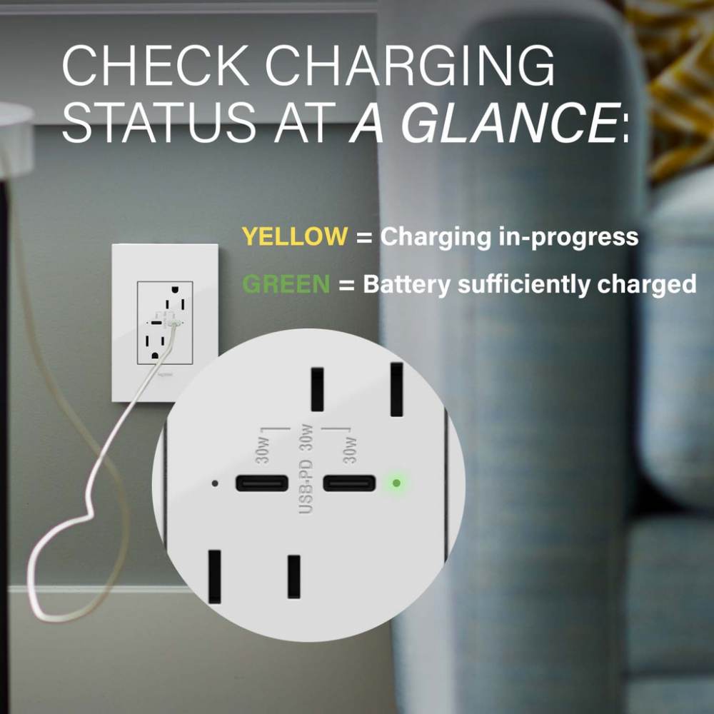 Charge phones, tablets and more up to 40% faster, with Ultra-Fast USB Outlets from the adorne? Collection. Made to deliver a leading 6 amps of power, it provides a fast, future-proof solution for convenient in-wall charging without an adapter. Easily replacing traditional outlets in as little as ten minutes, this Ultra-Fast USB Outlet transforms your space with modern functionality and the unique, contemporary aesthetic of adorne. Made exclusively for use with screwless Wall Plates from the adorne? Collection, sold separately.