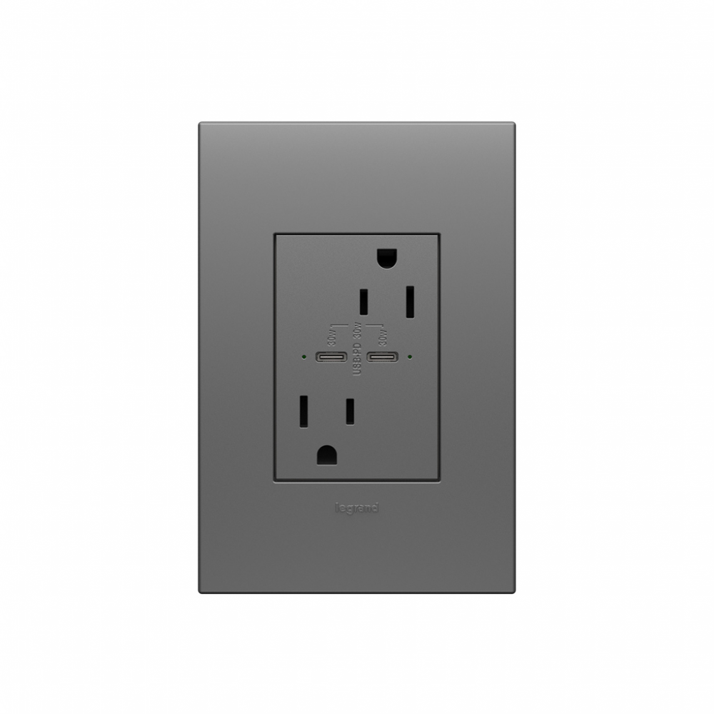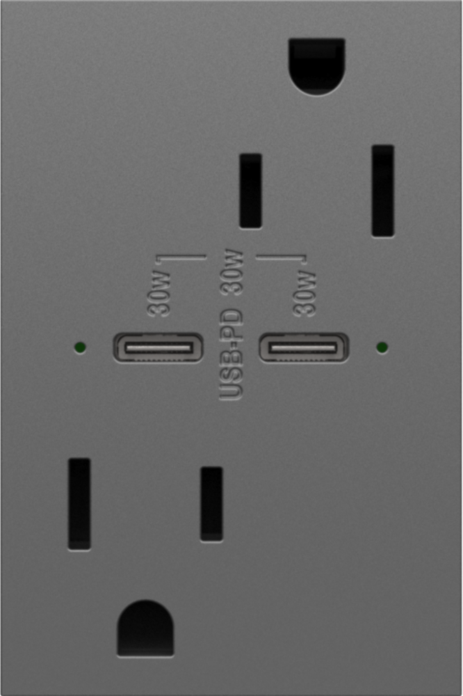 adorne? 15A Tamper-Resistant Ultra-Fast Plus Power Delivery USB Type-C/C Outlet, Plus-Size, Magnesium