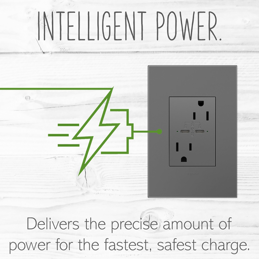 Charge phones, tablets and more up to 40% faster, with Ultra-Fast USB Outlets from the adorne? Collection. Made to deliver a leading 6 amps of power, it provides a fast, future-proof solution for convenient in-wall charging without an adapter. Easily replacing traditional outlets in as little as ten minutes, this Ultra-Fast USB Outlet transforms your space with modern functionality and the unique, contemporary aesthetic of adorne. Made exclusively for use with screwless Wall Plates from the adorne? Collection, sold separately.
