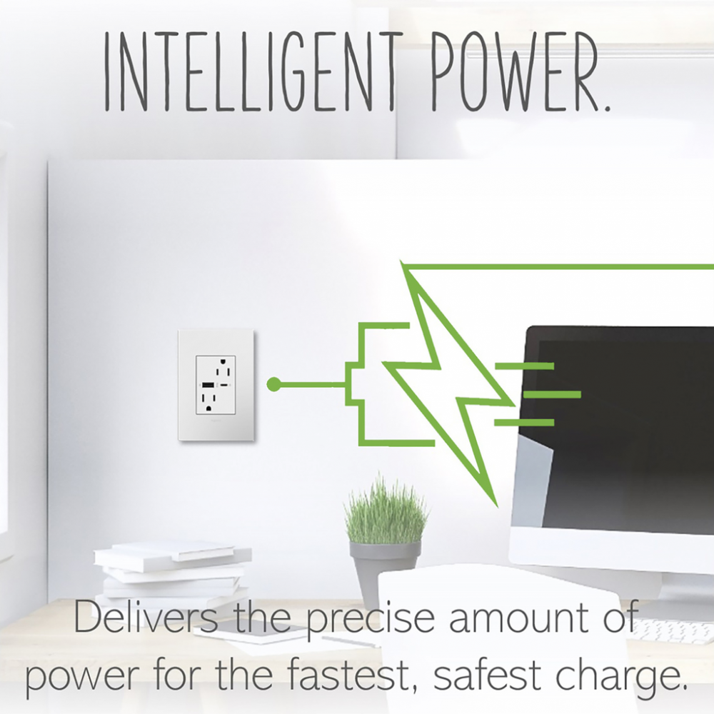Charge phones, tablets and more up to 40% faster, with Ultra-Fast USB Outlets from the adorne? Collection. Made to deliver a leading 6 amps of power, it features two built-in USB connections, including one to fit USB Type-C devices, and provides a fast, future-proof solution for convenient in-wall charging without an adapter. Easily replacing traditional outlets in as little as ten minutes, this Ultra-Fast USB Outlet transforms your space with modern functionality and the unique, contemporary aesthetic of adorne. Made exclusively for use with screwless Wall Plates from the adorne? Collection, sold separately.
