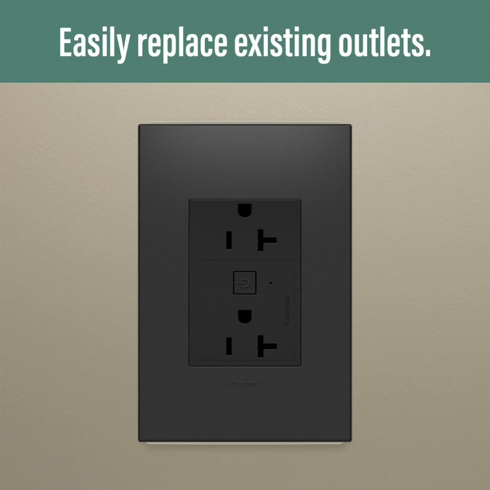 With this 20A smart outlet, take control lamps or small appliances from anywhere. (One outlet is app-controlled, the other is always on.) Monitor and manage energy usage through the app to reduce utility cost and waste. Part of the adorne? with Netatmo solution.Smart Lighting lets you control lights and power, from anywhere, adding safety and convenience to your home. And delivering it all with unprecedented range and reliability, adorne? with Netatmo leverages leading Netatmo technology to provide an ideal solution for larger homes with many smart products. Start with the Smart Gateway to establish a robust and dedicated mesh network, then add smart switches, dimmers and outlets to build a solution that perfectly fits a home?s unique space and needs. Options even include wireless smart switches and dimmers for easily adding 3-way control.?Made exclusively for use with screwless Wall Plates from the adorne? Collection, sold separately.