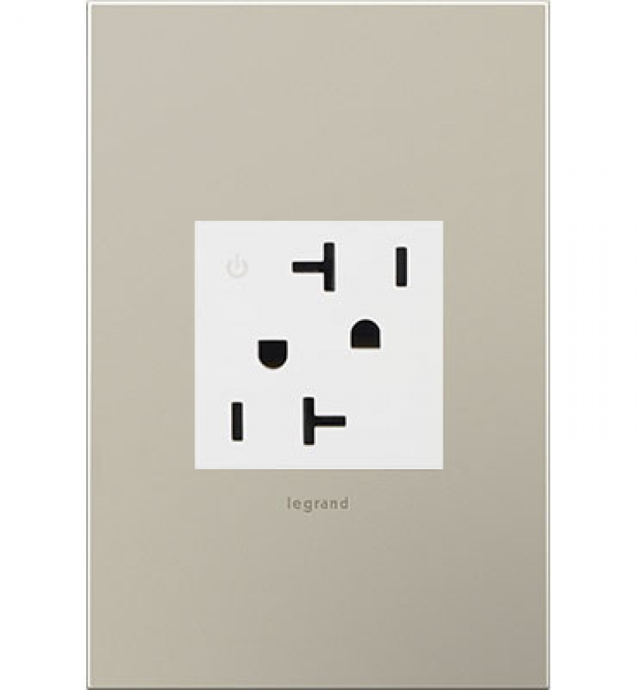 A modern upgrade for style, safety and energy management, this tamper-resistant, dual-controlled outlet from the adorne Collection installs easily in place of an existing outlet. Made exclusively for use with screwless Wall Plates from the adorne? Collection, sold separately.