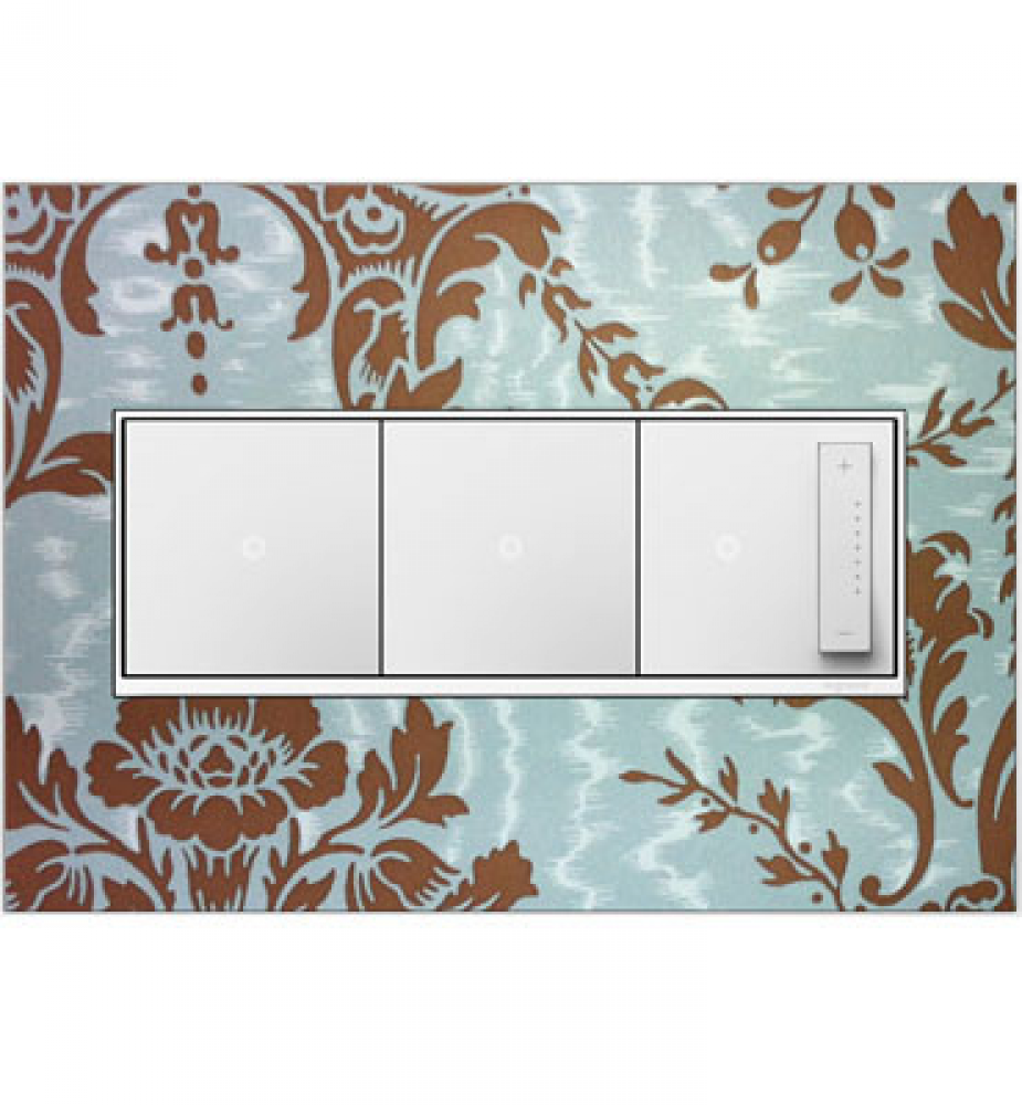 For a truly unique option, personalize this Wall Plate with wallpaper, paint, or even fabric. A 4-Gang Wall Plate, it is perfectly sized to fit any combination of up to four standard-sized adorne devices, or up to eight half-sized adorne designer switches and outlets.