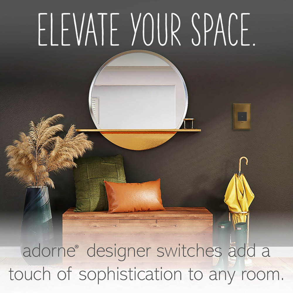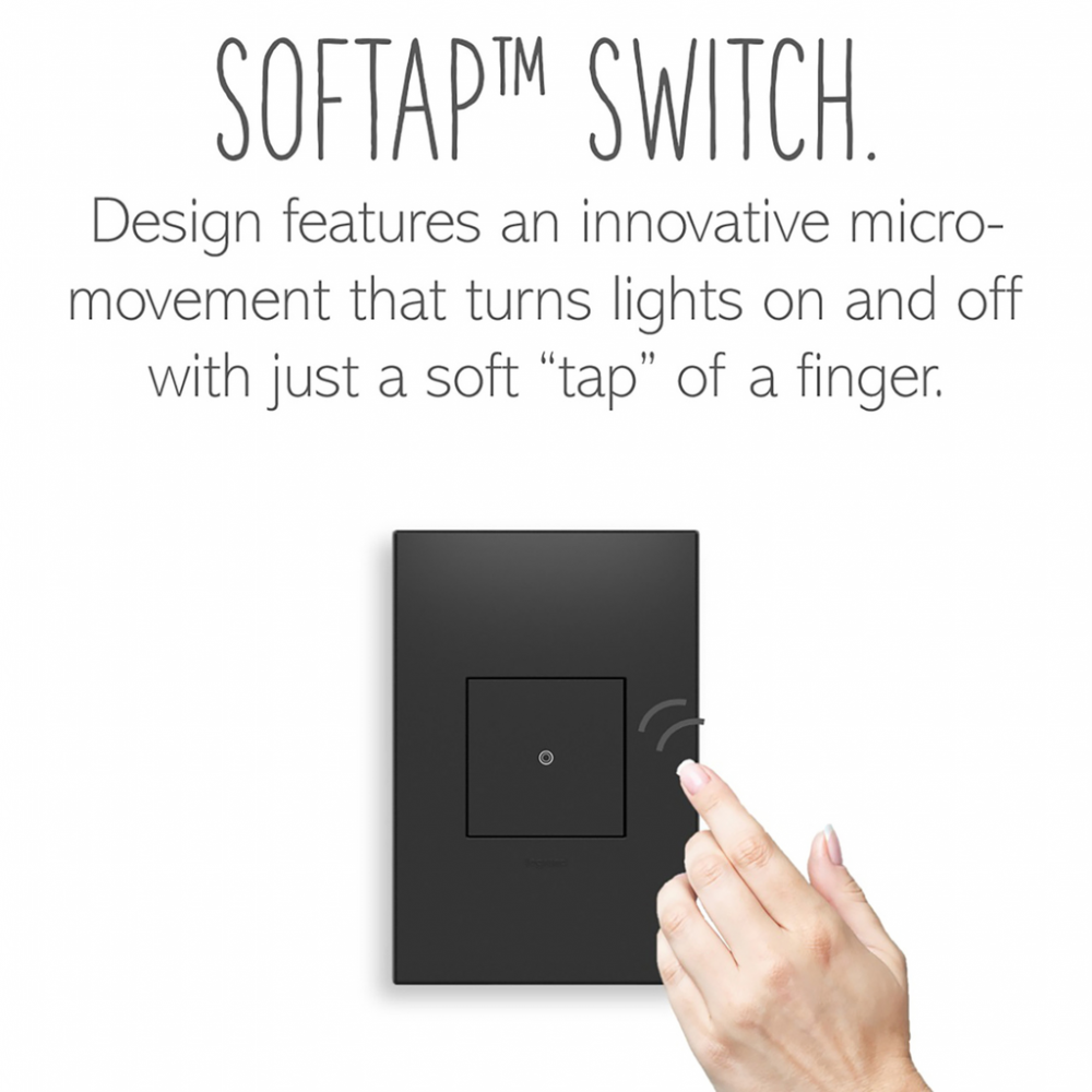 Turn lights on/off with just a soft tap of a finger, thanks to the inventive micro-movement technology of this beautifully modern designer light switch.This switch* features enduring Microban? antimicrobial technology that works to reduce the growth of bacteria, around the clock, for the lifespan of the product.* Existing inventory of switches, dimmers and plastic wall plates from the adorne? Collection at some partner locations may not yet include Microban? protection. To confirm that a specific Legrand product is protected with Microban?, check that the exterior of the product packaging includes a green dot or a ""Protected with Microban"" label.Made exclusively for use with screwless Wall Plates from the adorne? Collection, sold separately.No antimicrobial efficacy claims are being made or are valid with respect to products sold in Canada.