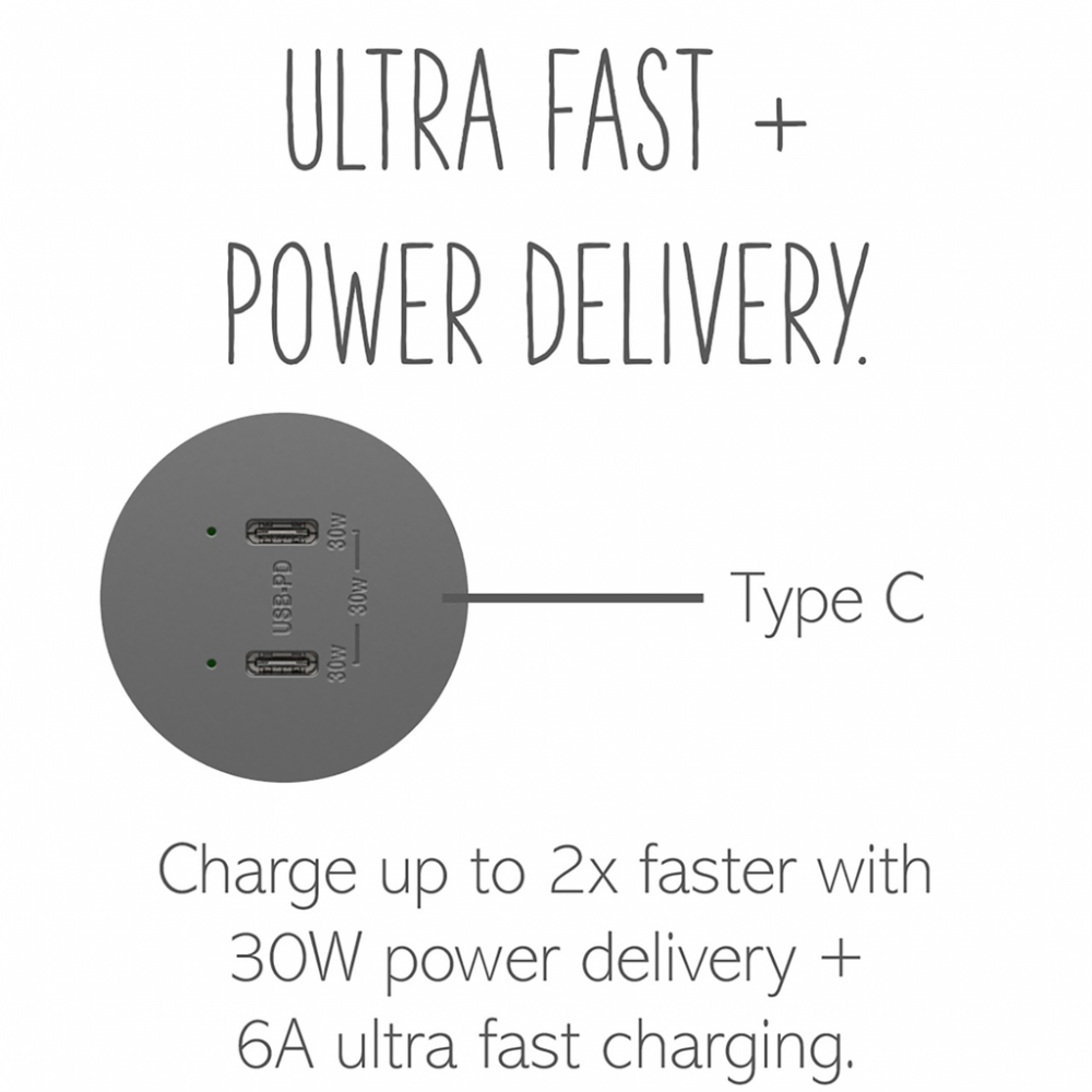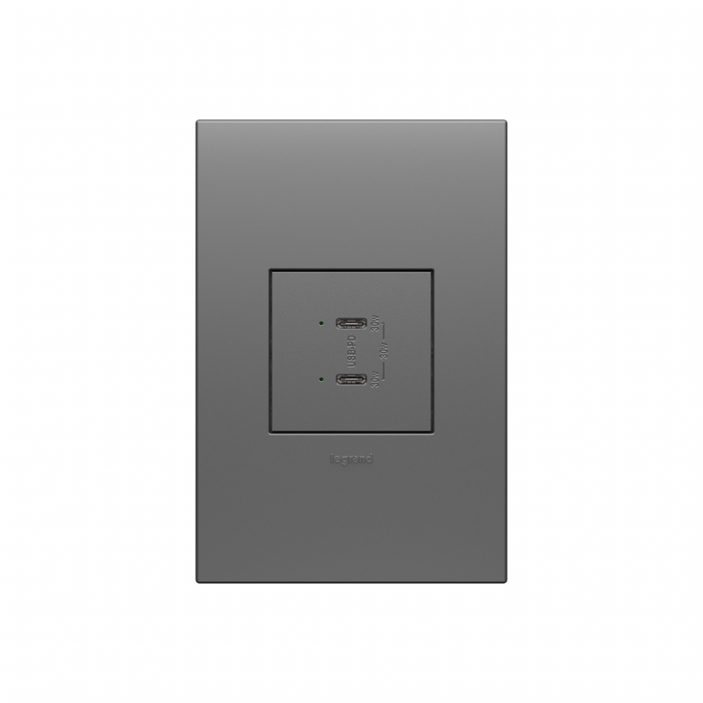 adorne Ultra-Fast Plus Power Delivery USB Type-C/C Outlet Module, Magnesium