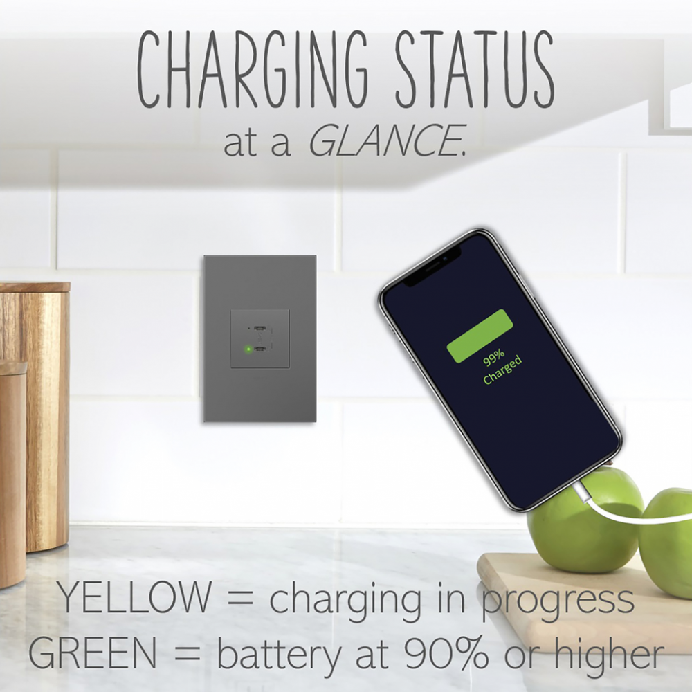 Charge phones, tablets and more up to 40% faster, with Ultra-Fast USB Outlets from the adorne? Collection. Made to deliver a leading 6 amps of power, it provides a fast, future-proof solution for convenient in-wall charging without an adapter. Easily replacing traditional outlets in as little as ten minutes, this Ultra-Fast USB Outlet transforms your space with modern functionality and the unique, contemporary aesthetic of adorne. Made exclusively for use with screwless Wall Plates from the adorne? Collection, sold separately.