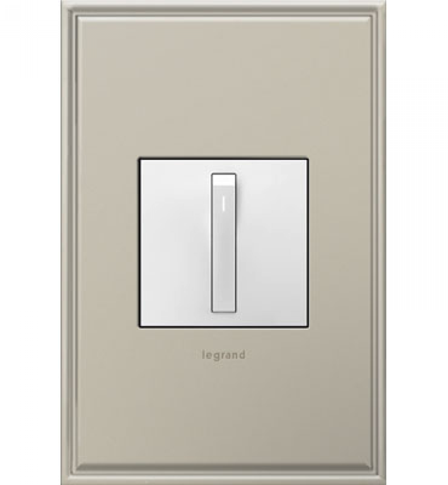 Control your lights with a soft, fluid motion using this modern light switch.This switch* features enduring Microban? antimicrobial technology that works to reduce the growth of bacteria, around the clock, for the lifespan of the product.* Existing inventory of switches, dimmers and plastic wall plates from the adorne? Collection at some partner locations may not yet include Microban? protection. To confirm that a specific Legrand product is protected with Microban?, check that the exterior of the product packaging includes a green dot or a ""Protected with Microban"" label.Made exclusively for use with screwless Wall Plates from the adorne? Collection, sold separately.No antimicrobial efficacy claims are being made or are valid with respect to products sold in Canada.