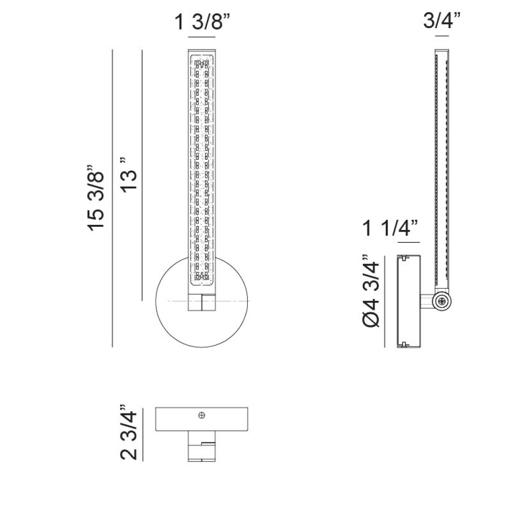 4.75"W x 15.38"H x 2.75"E