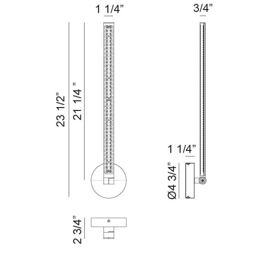 4.75"W x 23.5"H x 2.75"E