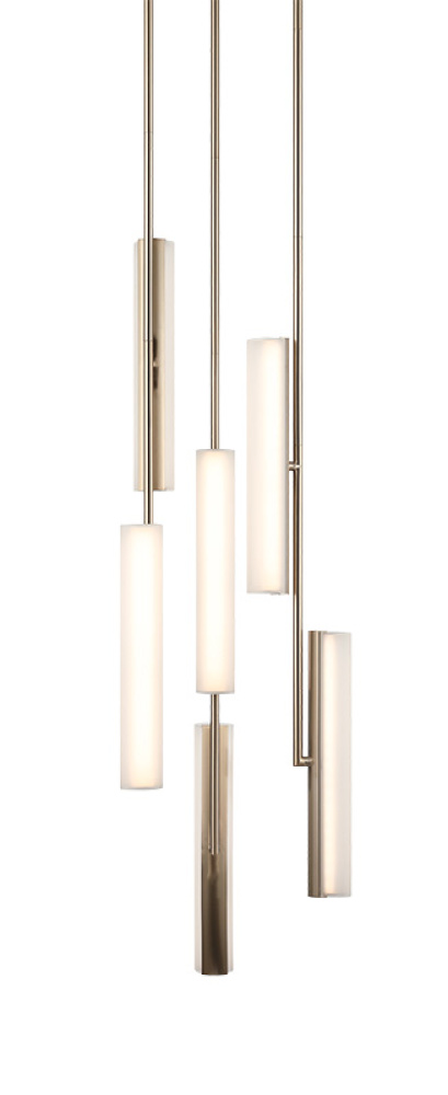 Axis Illuminate your space with sculptural elegance. The Axis is a modern multi-pendant chandelier that transforms lighting into art. Sleek cylindrical elements are suspended at varying angles, creating a dynamic architectural presence. Each tube emits a softly diffused warm glow that enhances any environment. The collection is offered in Champagne Gold with white frosted glass or Matte Black with smoke frosted glass, allowing you to choose the aesthetic that best complements your space. Features a 5CCT switch on the LED module to adjust the 5 selectable colour temperature