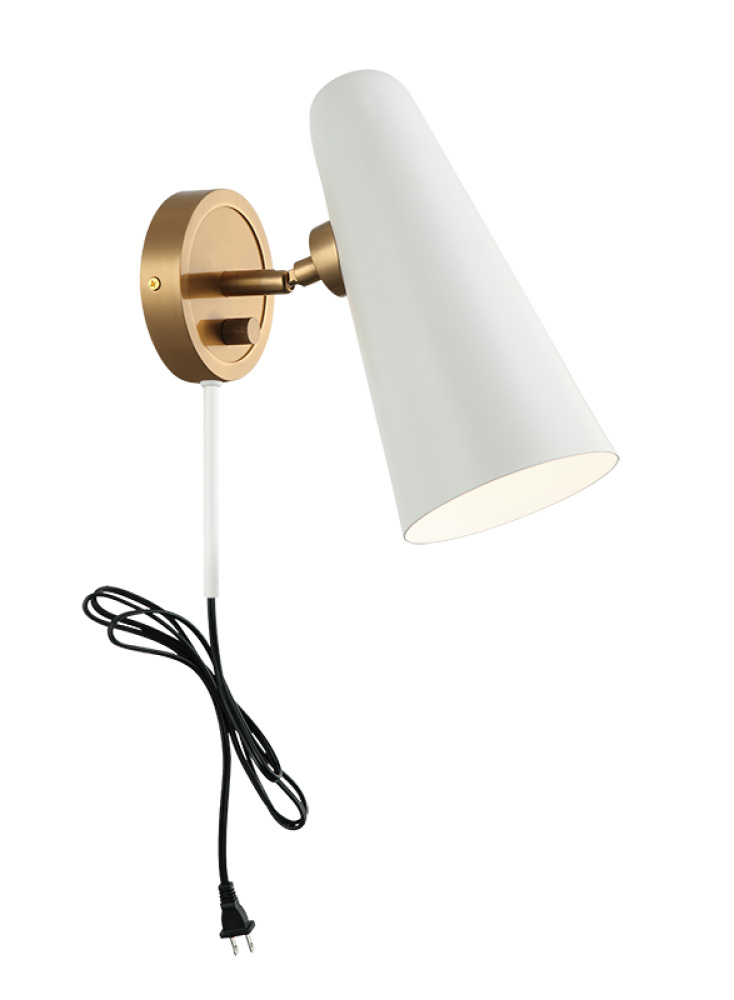 The clean design of this series is inspired by a retro spotlight but with a modern look and finish. The Blink series comes in 2 finishes combinations: Aged Gold Brass with White and Aged Gold Brass with Black. Featuring a dimmable light and adjustable shade, Blink will add an additional modern element.