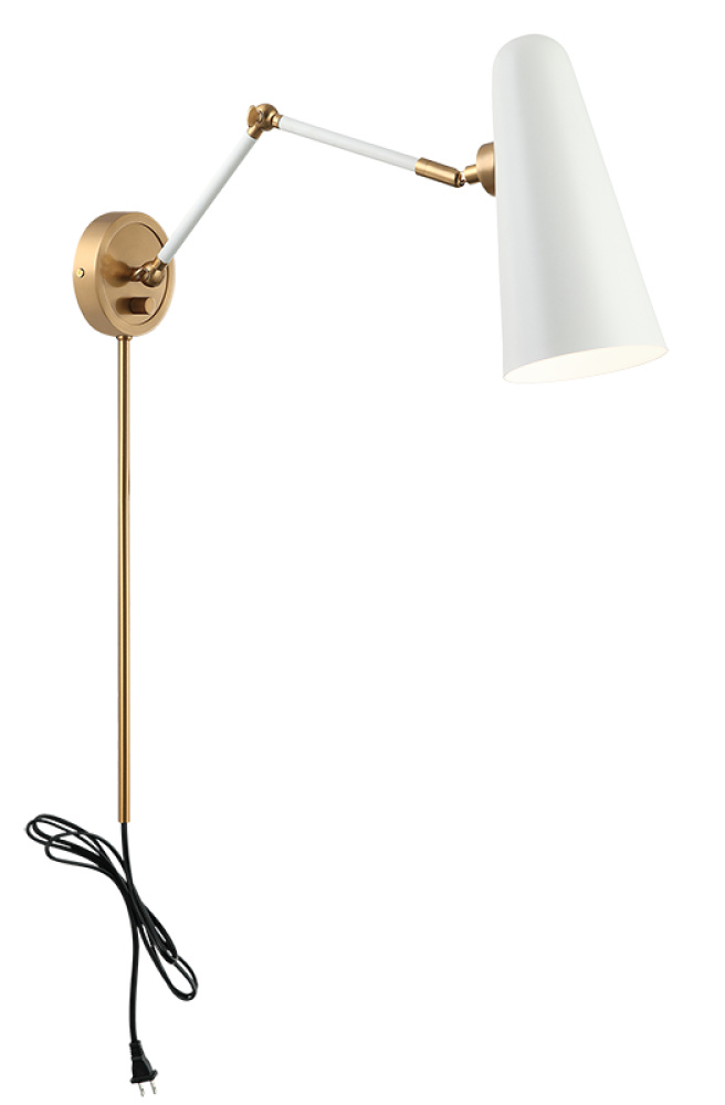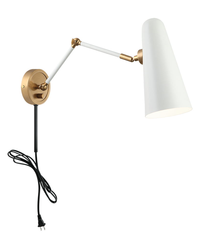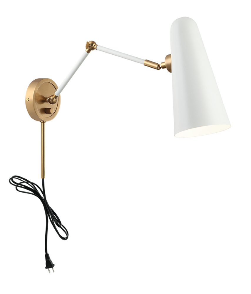 The clean design of this series is inspired by a retro spotlight but with a modern look and finish. The Blink series comes in 2 finishes combinations: Aged Gold Brass with White and Aged Gold Brass with Black. Featuring a dimmable light and adjustable shade, Blink will add an additional modern element.