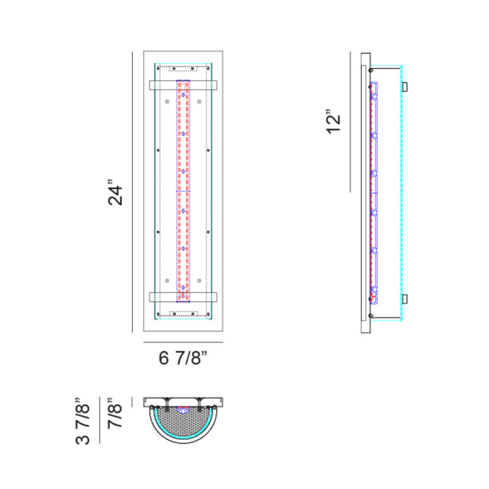 6.88"W x 24"H x 0.88"E
