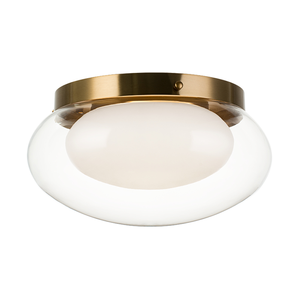 A bold design that offers both diffused lighting from the white acrylic, which softens the light, and a more transparent, modern look from the clear outer glass. The Caspian delivers a stylish and contemporary option. Often used in ceiling lighting for rooms where you want a sleek profile and warm, ambient light. Good for small spaces.